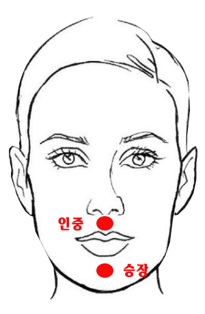 이마에서 시작해 입으로 서서히 마사지를 하면서 내려온 후 “임맥” 중의 한곳인 ‘인중과 승장’ 부위를 양손 검지를 이용해 좌, 우로 문질러 줍니다. 인중과 승장 마사지는 치아(잇몸) 건강과도 직결됩니다.