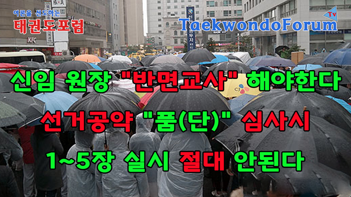 태권도포럼에 게시된 내용에 대해 일선 태권도계의 여론을 있는 그대로 보려면 태권도포럼 “여론게시판”에 게시된 ‘도장 내 승품.단 심사는 태권도의 수련가치를 추락시키는 앞을 보지 못하는 근시안적 정책이다’를 참고 하기 바랍니다.
